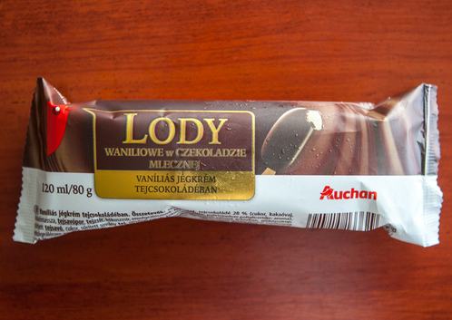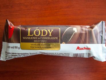 Az auchanos fagyi édes, nagyon vastag a csokibevonója és jó krémes a tölteléke. Plusz előnye, hogy tényleg vaníliaízű a fagylalt, talán ez volt az egyetlen, amelyiknél tényleg vissza is köszönt a várt ízesítés.