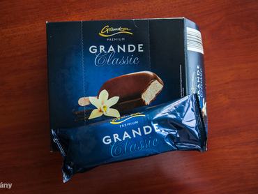 A SPAR-ban ezt találtuk saját márkás helyett, kár, pedig megnéztük volna mit tud a budget is. Ez most annyira nem mozgatta meg a tesztelőket, a fagylalt bevonója vékony és ropogós, a krém benne habos, viszont íze nem sok van.
