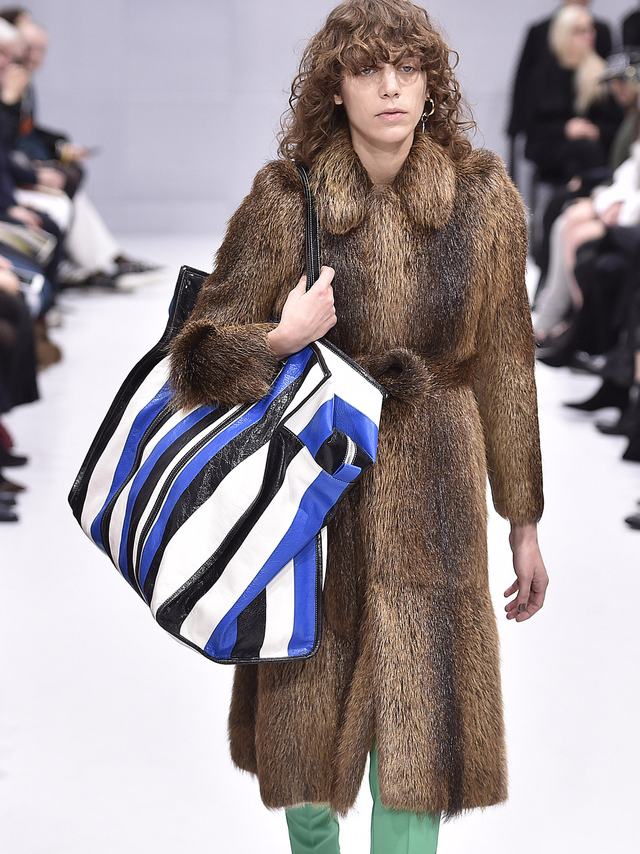 A francia Balenciaga közel félmillió forintért árulja a csíkos piacozós táskát.