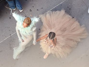 Beyonce lánya, Blue Ivy egy 11.000 dolláros, azaz 3 millió forintos Mischka Aoki ruhát viselt a vasárnap este tartott, pucérruhákban és kivágott kis feketékben bővelkedő MTV Video Music Awardson New Yorkban. Az énekesnő drámai, tollas vállú ruhában vonult be a gálára, és mivel lányával együtt tette tiszteletét, nem engedhette meg magának (és Blue Ivynak), hogy a kislány pólóban-farmerben jelenljen meg, úghogy kapott a gyerek egy hercegnős, csupatüll estélyit: de nem ám olyat, amit az átlagos négyévesek kapnak az F&F vagy a H&M gyerekosztályán, ha végre sikerül kisírniuk egy rózsaszín jelmezt, hanem egy valódi dizájnerruhát.