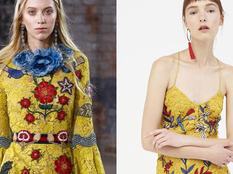 A Gucci virágokkal díszített sárga csipkeruhája valamilyen formában megjelent a Sachin kollekciójában is.
