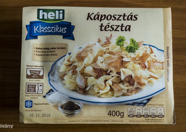 | 10. | 7 pont | Heli Káposztás tészta | Tesco | 400 g | 1998 ft / kg | 799 forint |