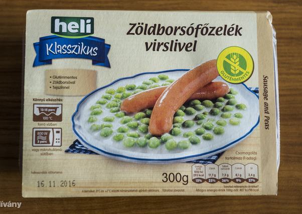 | 10. | 7 pont | Heli Zöldborsó főzelék virslivel | Tesco | 300 g | 2663 ft / kg | 799 forint |