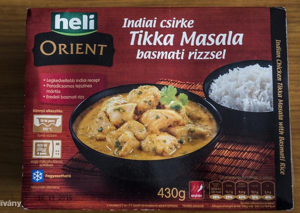| 1. | 22 pont | Heli Tikka Masala basmati rizzsel | Tesco | 430 g | 1858 ft / kg | 799 forint |