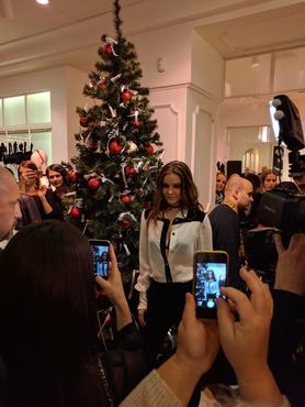 Ez pedig bármily hihetetlen, sosem látott tömeget vonzott a bolt elé, ahol már hatkor akkora tömeg alakult ki rajongókból, hogy alig lehetett bejutni az üzletbe. Bent egyébként sokminden nem történt, a bolt elrendezése nem a legalkalmasabb efféle tömegrendezvényekre, úgyhogy zsúfoltság volt, a kiválasztottak pedig egy külön helyiségben interjúzhattak a szupermodellel, akit a nem kiválasztottak maximum hátulról láthattak pár perc erejéig. Az est fénypontja az volt, hogy még hét előtt Palvin Barbi előrejött és felkapcsolta a bolt karácsonyfájának égőit, majd aki elég erős volt és elszánt, odafurakodhatott mellé egy közös fotóra. A kint várakozó rajongókat pedig csak ezek után, ötös csoportokban engedték be - de ezt már nem vártuk meg.
