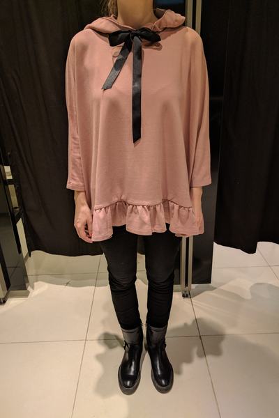 A lengyel márkánál mindig az az érzésünk, hogy egy szezonnal a többiek mögött kullog, és ezzel nem is lenne semmi baj, csak valahogy pont egy hajszálnyival drágább, mint amilyennek a ruhái kinéznek. Ettől függetlenül találtunk olyan pulcsit (lenti képen látható), amit azonnal hazavinnénk és nem is túl drága (8 ezer forint), plusz vannak ötletes, tüllel megtoldott oversized pulóverek is lányos színben, ezeket nem találtuk meg máshol. A csipkeruha mondjuk pont nem ragadott magával, és a púderszín bomberdzseki se a legjobb vásár 12 ezerért, de az ujján fodros pulóver például tök jó darab.