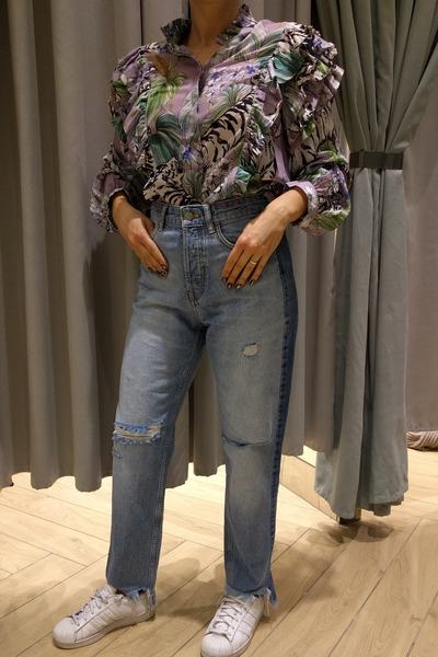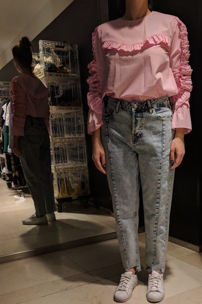 Furcsa látvány a rengeteg rózsaszín rögtön a bolt bejáratánál: még a cipők és szandálok is fuldokolnak a csajos árnyalatban. Természetesen a spanyol márka is futja a kötelző köröket az oversize, pink színű melegítőktől kezdve a bársonyruhákon át a fodros blúzokig, de ha valami oknál fogva szeretne a hideg ellenére divatosan hasat villantani, akkor is itt a helye, főleg ha nem sokall 10 ezer forintot egy derékig érő pulóverért. Ugyan a honlap alapján itt is vannak patchwork farmernadrágok, azért az üzletben vadászni kellett rájuk, de ha megelégszik a márványszerű koptatással vagy a direkt szakadásokkal, akkor már egy fokkal könnyebb helyzetben van. Ha pedig ötvözné a két nagy tavaszi trendet, van egy szuper hírünk, itt van fodros farmering is.