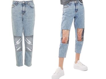 Nyilván teljesen őrülten néz ki a végeredmény, de épp ez benne a király, hogy nem a szokásos, unalmas szaggatott farmerről van szó, hanem egy punkos, acidpartys, abszolút a 90-es évek kelet-európájába illő darabról. A Topshop "Moto Clear Patent Mom Jeans" névre hallgató farmerját a Nordstromról nem lehet Magyarországra rendelni, viszont ott a márka hivatalos oldala, ahonnan 6 fontnyi szállításért idehozzák (ott összesen 55 fontba, közel 20 ezer forintba kerül ez a kaland), de akár egy DIY fellángolás keretében is teljesen jól megvalósítható az átlátszó térdrészű nadrág.