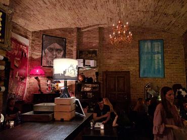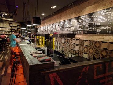 Nosztalgikus hangulatom támad ezen a helyen, mert imádtam a vidéki városok egyetemi kocsmáit a kilencvenes években. A bútorokban, a szín- és anyaghasználatban, az üvegre ragasztott feliratokban, egyszóval mindenben ez köszön vissza. Kicsit művház, kicsit presszó, kicsit olyan hely, ahol egy jó koncert előtt ittak tíz-húsz éve a fiatalok (csak sokkal rosszabb piákat, mint amiket most a Kadarkában adnak). Semmi sem ütött-kopott persze, mert nem régiek a tárgyak, meg nem is próbálnak megidézni egy kort. Egyszerűen csak hiányzik az egészből a koncepció. Igaz, a borbárok közt ez adja az egyéniségét.