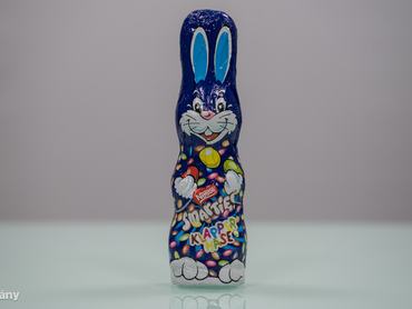 A Müllerben találtuk ezt a nagyon tavaszi virágos, rikító rózsaszín nyuszit, ami annyira kisütötte a beszerzőnk szemét, hogy kénytelen volt megvenni. Olyan nagy sikert nem ért el. A tesztelők nem csak a csokoládét találták túl szimplának, de volt köztük olyan is, aki a nyúl fejét annyira gonosznak ítélte meg, hogy gyorsan meg is ette. Több tesztelő is nagyjából egyetértett abban, hogy az íze nem a legjobb a mezőnyben, de volt, aki örült annak, hogy legalább vastag a csokija. "Szemből horror és az ízével áll bosszút" - írta egyikük, "Nagyon vastag, olyan érzés, mintha ettől kirohadna a fogam"- írta egy másik tesztalany.