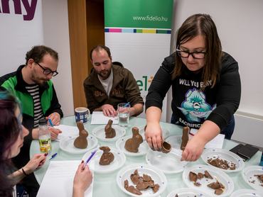 A pöttyös nyúl kicsit úgy nézett ki elsőre, mint akinek bőrbetegsége van, de szerencsére ez csak a rengeteg mogyorónak köszönhető. Volt, aki pont emiatt azt is megkockáztatta, hogy mogyoró nélkül a csoki talán nem működne önmagában, de ez sosem fog kiderülni. "Ez eléggé feldobja a műfajt, kérdés, hogy mennyire gyerekbarát a sok mogyoró benne"- írta le aggodalmait egyik tesztelőnk. És hogy javaslatot is tegyünk a jövőre vonatkozóan, álljon itt egy másik tesztelő észrevétele: "ez akkor lenne tökéletes, a Ferrero Roché csokiszósz is lenne benne."