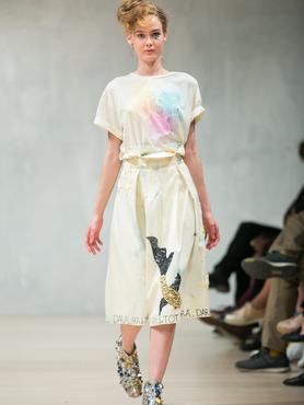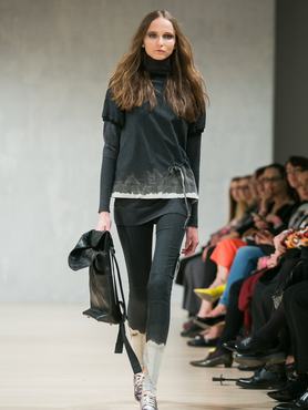 A kollekció fekete-fehér színvilágát fényes zöld és ezüst töri meg, az anyagok között megjelenik a mosható bőr és elasztikus hernyóselyem. Emellett meghökkentő, mégis hordható sziluettekben is bővelkedett a kollekció, melyet Katona Barbara ékszereivel és Kovács Helga táskáival egészített ki a márka a kifutón.