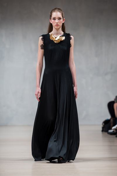 A Hajós utca 32. alatt található Szedő-ház a századforduló egyik csodálatos szecessziós épülete, amit talán nem mindenki ismer. A magyar márka tervezője, Cselény Eszter viszont igen, és ez adta az alapot legújabb kollekciójához. A kovácsolt vasból készült virágdíszítés például helyett kapott egy csodálatos estélyi dekoltázsán, de a dolgos hétköznapokon is bátran hordható blúzon is. A színek egyébként ősziesen visszafogottak, a fekete és fehér mellett bordós, rozsdás, rózsaszínes árnyalatokat láttunk a kifutón, ahol nappalra, a különlegesebb eseményekre és egy, a városban tölött estére szánt szetteket is felvonultattak a modellek, akik egyébként a Karman Jewelry ékszereit viselték. Érthető választás, hiszen a két márka már korábban is dolgozott együtt.