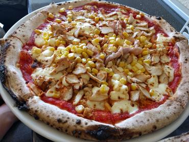 És hogy magáról a pizzáról is meséljek kicsit: a tészta klasszikus nápolyi stílusú, kemencében ropogósra sütött, a széle kifejezetten finom – és ez tőlem tényleg nagy szó, mert általában azt mindig otthagyom a tányéromon. A feltétek közt sok kifejezetten a magyar ízlésnek megfelelő – ilyen a kolbászos-tarjás-lilahagymás, vagy a tejfölös-csirkemelles-baconös-kukoricás –, de vannak autentikus olasz ízesítésűek is, ezek közül a négysajtos jött be nagyon. De abban is inkább magyarosak, hogy elképesztő gazdagon megpakolják a pizzákat. A végeredmény egy nagyon szerethető magyar-olasz hibrid – szerintem mindkét nép pizzafogyasztási szokásaiból a legjobbat teszik bele.