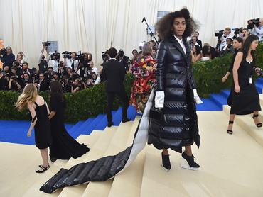Vagy ott volt Chrissy Teigen, akinek a fekete-fehér szettje simán csak ronda volt. Mondjuk ő még mindig jobban járt, mint Solange Knowles, aki egy jó vastag pufikabátban tette tiszteletét a gálán – keményen izzadhatott az erőltetetten téliesre vett szerkóban. Cserébe Bella Hadid – Kendall Jennerhez hasonlóan – szinte pucéran érkezett, a gyöngyös overál valószínűleg csak neki állt jól – vagy még neki se. Egyik kedvencünk a gyűjtésből Madonna Moschino ruhája volt, neki a tervező egy álcahálót, esetleg bokrot applikált a feneke környékére, amivel úgy nézett ki az énekesnő, mint aki dinoszaurusznak öltözött a jelmezbálra.