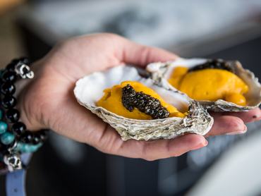 A kaviár nemcsak magában, vagy éppen halételek ízesítőjeként, de még desszertben is jó tud lenni. Persze oda kell figyelni az arányokra, mert nagyon sós. Mi mangósorbetet kóstoltunk vele, kicsit tartottunk tőle, hogy halas íze lesz az édességnek, de nem volt neki. És bár nem mondom, hogy innentől minden ebéd után arra vágyom majd, hogy osztrigahéjból kecsegekaviáros mangósorbetet kanalazzak, de egyszer érdekes élmény volt. (És az Instán is milyen jól néz már ki.)