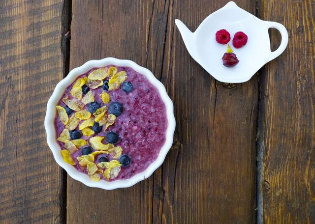 Elkészítés: A gyümölcsöket megmosom, egy kevés áfonyát, málnát, vagy amit tudtam szerezni, félreteszek a díszítéshez, a többit a növényi tejszínnel együtt leturmixolom. Belekeverem a chia magot és legalább fél órára a hűtőbe teszem, hogy megduzzadjon. Összeállítom a tálakat az erdei krémmel, kukoricapehellyel