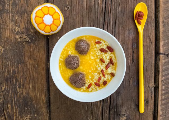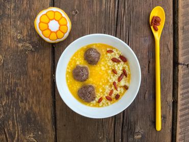 Köleses mandarinos tál goji bogyóval és karobos kesuvajjal (gojival kb 18. hónaptól, anélkül 12-től)