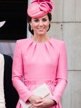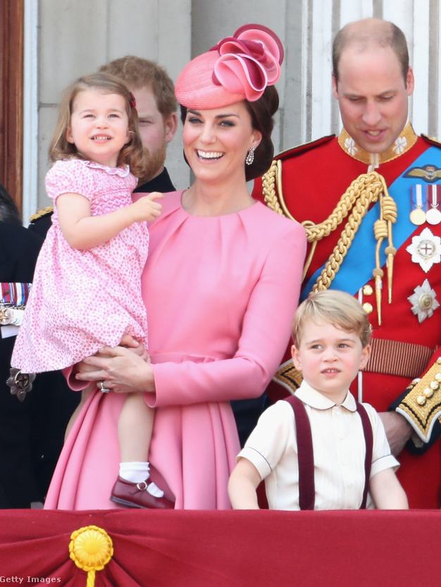 A királyi családban nemcsak a királynő szereti a harsány színeket, de a cambridge-i hercegné is, aki egy hosszú ujjú, rózsaszín Alexander McQueen ruhát és hozzá illő Jane Taylor kalapot választott az alkalomra. Meg is lepődtünk volna, ha nem az udvar kedvenc házitervezőjénél, Sarah Burtonnél (a Mcqueen dizájnere) keresett volna ruhát az alkalomra.
