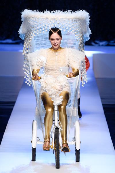 Lassan három éve annak, hogy Jean Paul Gaultier bemutatta utolsó ready-to-wear kollekcióját Párizsban. A 65 éves tervező jól tette, amikor úgy döntött, hogy ezentúl csak az haute couture kollekciókra koncentrál, mivel azóta vagyunk csak igazán nagy rajongói munkásságának. Idei, Rue Saint-Martin-i stúdiójában bemutatott, kissé ironikusra sikerült kollekcióját elnézve retro sípulóverben, túlárazott kötött sapkában, jeti csizmában, pufi mellényben és arcékszerekkel fognak járni a kőgazdagok az év második felében.