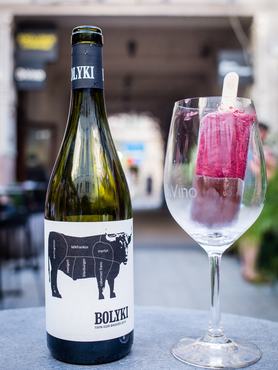 Bolyki Pincészet – Egri Bikavér: Erdei gyümölcsös bikavér jégkrém, a felső 1/3-a kolumbiai étcsokoládéba mártva. Kb: 3% alkoholtartalom