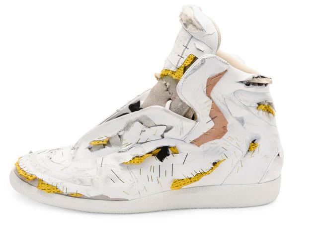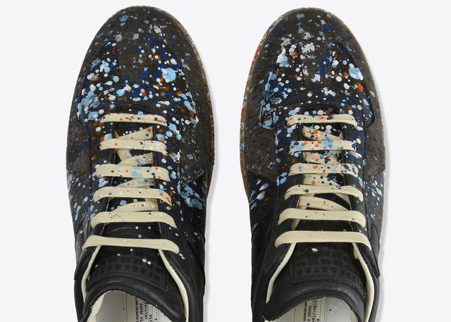 De vannak már-már visszafogottnak mondható cipők is a márka kínálatában, például festékkel lefröcskölt klasszikus Replica sneakerek, melyeket 555 euróért (kb. 169 ezer forint) lehet megvásárolni (vagy vegyél egy Tisza cipőt, az majdnem ilyen és fröcsköld le).