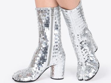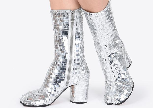 Ilyenből amúgy van most diszkógömbszerű, ezüstszínű darab az új kollekcióban. Az ezüstöt és az ehhez hasonló fémes színű cipőket amúgy is imádják a Margielánál, ahogy a csillámporral töltött, mást viszont nem nagyon tartalmazó, a Gyűrűk Ura Szarumántól elcsaklizott kristálygömbjére hasonlító hógömböket is.