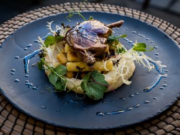 Konfitált kacsacomb túrós nudlival és zellerpürével