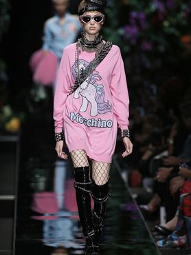 Ezúttal az Én kicsi pónim karakterei kerültek sorra, amiket ráadásul olyan celebmodellekkel mutattak be, mint Bella Hadid vagy Kaia Gerber, tehát feltételezhetően minden kamaszlány felírta már a pólót a karácsonyi kívánságlistájára. Két évvel ezelőtt körülbelül 2500 forintért turkáltam magamnak My little pony-s felsőt, de egy Moschino feliratos darabért mélyen a zsebünkbe kell nyúlni, a haspólóért ugyanis 350 dollárt (kb. 92 700 forintot), a pulcsiruháért 600 dollárt (kb. 159 ezer forintot), az iPhone tokért 75 dollárt (kb.19 ezer forintot) egy hátizsákért pedig 695 dollárt (kb. 184 ezer forintot) kérnek az olasz márkánál.