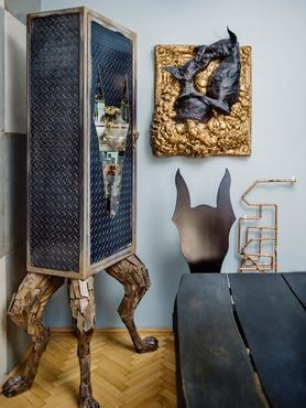 A monumentális szobrairól ismert művész a budapesti divathéten mutatta be legújabb bútorait és kiegészítőit.