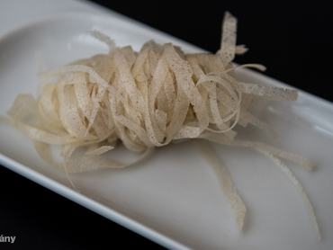 Ez egy enoki gomba, amit imád az ázsiai konyha. Enyhe íze van, állaga ropogós. Nagyon jól mutat tavaszi tekercsben és szusiban.