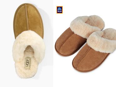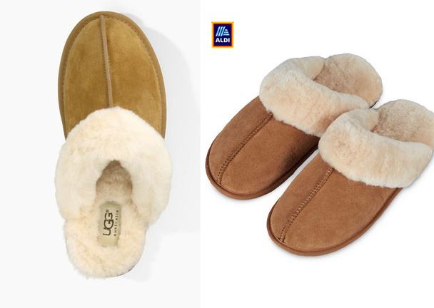 Az Aldi persze kicsit silányabb minőségben, bárányok helyett marhák kültakaróját is felhasználva, de szemlátomást nagy odafigyeléssel kivitelezett koppintása csak 5000 forintba fog kerülni. Szinte csak az Ugg márkajelzés maradt ki az amúgy teljeskörűnek ígérkező szolgáltatásból.