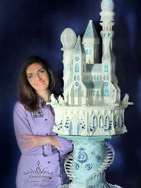 „Ihletforrást nehéz volt találni. Sok valós épület, kastély és üvegpalota fotóját végignéztem az interneten, de egyet sem találtam, ami igazán segített volna, hogy részben, vagy egészében rekonstruálni lehetett volna. Sok tetsző apró részletet kellett egybegyúrni. Így igazán egyedi lett végül. A nagyobb cukormáz költemények elkészítése mérnöki látásmódot, fantáziát és pontosságot igényel. Én még nem készítettem ekkora munkát. Nagyszerű ötlet volt a férjem részéről, hogy mint egy legót próbáljuk összerakni hungarocell darabokból. Így az ő segítségével apránként tudtuk pontosítani a végső arányokat és a körvonalakat. A tortát összetartó szerelhető vázrendszert is a férjem találta ki. De a szállíthatóságot is nagy munka volt megvalósítani, erre igazán egyedi ötleteket dolgozott ki. Csak így volt lehetséges a 120 cm, közel 45 kg-os torta mozgatása és utaztatása Budapestre és vissza a stúdióba. Sőt, a ledes kivilágítás is a férjem munkája, ami csodásan kiegészíti a látványt”