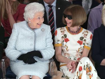 A 91 éves királynő életében először vett részt az eseményen. Egy feltörekvő tervező showját tekintette meg Anna Wintourral.