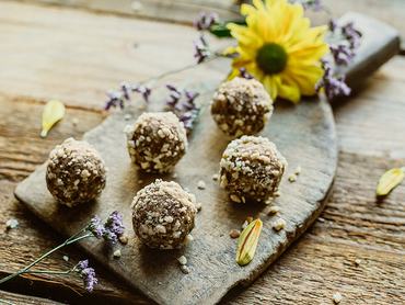 A hozzávalókat tedd egy mixer gépbe, és addig forgasd, amíg masszává nem áll össze. Szükség esetén, ha nem elég kemény az állaga, adj még hozzá darált mandulát. Formázz belőle kisebb golyókat, majd tedd egy órára a hűtőbe. Elkészítés után maximum egy hétig tárolhatod, fogyaszthatod.