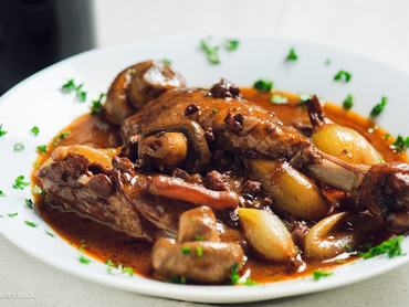 A gyöngyhagymával és gombakalapokkal tálalt coq au eredetlieg kakassal készült, de csirkével is ugyanolyan jól megállja a helyét, ráadásul olyan francia étel, amit Franciaországon kívül is szívesen készítenek a séfek. Nem csoda, hiszen amilyen egyszerű, olyan elegánsan lehet tálalni.