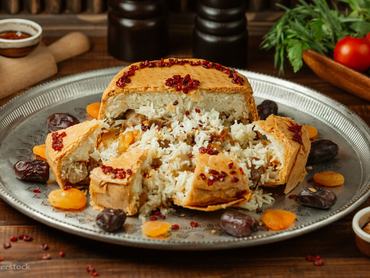 A közép-ázsiai eredetű khan plov az orosz rizsételek listájának sorát tarkítja. A sáfrány szép, sárga színt ad a rizsnek, ami a lazaccal együtt ropogós burkolatot kap.