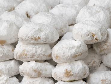 Ennek a görög finomságnak a mandula adja a különleges ízét. A falatnyi méretű süteményeket porcukorral szórják meg, mielőtt az asztalra kerülne.