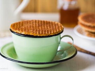 A Stroopwafels a kulináris élvezetekről híres Goudából származik. A karamellával összeragasztott vékony kekszlapokat általában kávé vagy tea mellé eszik. Tedd a csészéd tetejére, hogy a finomság elérje az ideális állagot!