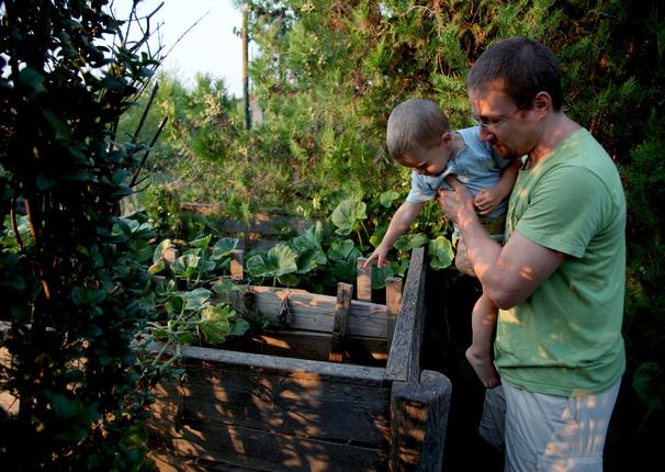 A család először a csomagolásmentes bevásárlást valósította meg: a piacra dobozokkal mennek, a pékségbe vászonszatyorral, és ahol a személyzet nem segítőkész, ott gondolkodás nélkül váltanak, akkor is, ha az alternatíva messzebb van vagy drágább. A szemetet természetesen szelektíven gyűjtik, amióta ez itthon lehetséges, kirándulásaik alkalmával akár haza is hozták, ha nem volt szelektív gyűjtési lehetőségük. Élelmiszer-hulladékuk már 5 évvel ezelőtt is minimális volt – ezt az ÖkoKör nevű, a Tudatos Vásárlók Egyesülete által itthon meghonosított környezettudatosságra nevelő önképzőkör során akkoriban maguk mérték le. Persze ezek csak az első lépések voltak, amiket még nem is tekintettek igazi cselekvésnek. Zöldségeiket eleinte úgy próbálták biztosítani, hogy csatlakoztak egy szövetkezeti alapon működő földközösséghez, de ez nem vált be.