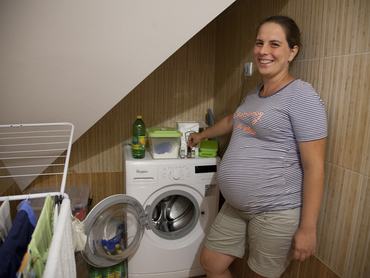 Mosószerként a 25 kilós kiszerelésű mosószóda szolgál – a mosódió azért nem jó, mert túl messziről, Indiából érkezik hozzánk. A szódából elegendő egy mosásra három evőkanál, öblíteni pedig ecettel szokott Hilda. A makacsabb foltokat nátrium-perkarbonáttal vagy marhaepeszappannal kezeli. Házi dezodort, szappant is tud készíteni: előbbi sajnos nem vált be, az utóbbinál pedig most már inkább egy rászoruló anyukát támogat a vásárlásával, aki, elvárásai alapján – pálmaolajmentes, helyi alapanyagból készülő, csomagolásmentes – elkészíti számára a főzött szappant, és egy cipősdobozban adja át. A házi készítésű fogkrém sem vált be, jelenleg abból boltit és fogport is használnak. Karesznek borotvakése van, Hilda a mosható intimbetéttel szemez, ha majd újra szüksége lesz rá a második gyermek megszületése után. Kezdetektől a mosipelust részesítik előnyben – sajnos a márka, ami jó lett kisfiuknak, külföldi és nem is a legolcsóbb fajta – de a mosható pelenkáknál a külső illeszkedése a kulcskérdés, és ez gyerekről gyerekre eltérő. Kiiktatták a popsitörlőket és a hagyományos popsikrémet is: előbbi helyett vízzel nedvesített régi felvágott pólót használnak, az utóbbit – amely kőolajtartalma miatt van tiltólistán – shea vajjal helyettesítették.