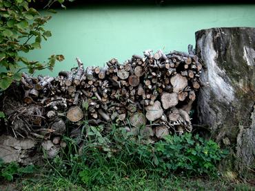 Alapelvük, hogy semmit sem szabad elpazarolni, például a telkükön álló régi ház minden darabját igyekeztek így vagy úgy felhasználni vagy elajándékozni. Úgynevezett dán típusú tömegkályhát készíttettek, ami az egész alsó szintet tökéletesen kifűti. Ennek lényege a vastagabbra rakott fal, a légjáratok olyan kialakítása, amely az égéshő nagyon magas hatásfokú kihasználását eredményezi, szinte alig füstöl a kémény. „Melléktermékként” télen sütni-főzni is tudnak rajta. A kályhát fával fűtik – ez megújuló energia. A felső szinteken elektromos rásegítést alkalmaznak, mivel áramot zöld módon is elő lehet állítani, míg gázt nem – ez utóbbit ki is köttették a házból. A napelemnek már megvan a hely a tetőn, csak még a felszerelését nem tudták megoldani – ez Karesz szerint befektetésnek sem utolsó, 10 év alatt behozza az árát.