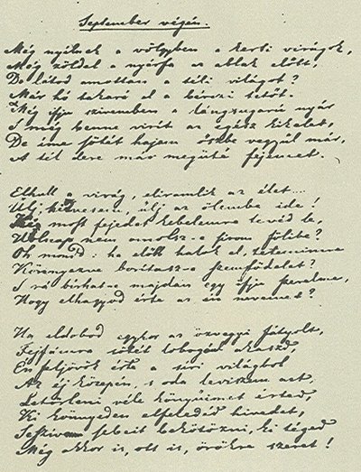 Petőfi Szeptember végén című versének kézirata