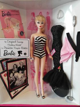 Az első (egyébként szőke és barna kivitelben egyaránt elérhető, nevét a tervező lányáról, Barbaráról kapó) baba leginkább pin up girlre hasonlított. Csíkos fürdőruhájához magas sarkút és frivol cicaszemüveget viselt, csábos oldalpillantásától épp csak, hogy nem gyulladtak fel a játékbolt polcai. Barbie az 1959-es Amerikai Játékvásáron mutatkozott be, és már az első évben 350 000 példány kelt el belőle.