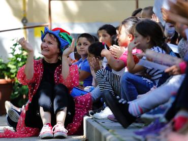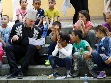 „A legutóbbi koncertünk a Vadaskert Alapítvány ambulanciáján volt, ahova ottani iskolások és a pszichiátriára járó gyerekek is jöttek, kiskamaszok és kamaszok. A mesét minden korosztály másképp hallgatja, ez a meseterápiában alap. Nekik a klasszikus Csipkerózsika-történetre alapuló mesevariációt találtam ki, amiben ugye Csipkerózsika elalszik, és mindenki próbálja felébreszteni. Ez a változat kifejezetten kamaszoknak szólt, és valamilyen módon mindenki megértette, hogy arról az állapotról van szó, amikor egy tinédzser befelé fordul, felveszi a kamaszmaszkját, és megközelíthetetlen lesz a felnőttek számára. Az volt a kérdés, hogy hogyan lehet felébreszteni, jöttek csodadoktorok, voltak benne terápiák – és a gyerekek láthatóan rezonáltak a sztorira, aminek persze minden pillanata ki volt előre találva.”