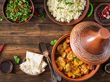 Az észak-afrikai konyha jellegzetes étele a tazsin (tajine, tagine), ami saját főzőedényéről kapta nevét. A kúp alakú, hagyományosan agyagból készült, többnyire mázas sütőtál tulajdonképpen egy slow cooker, amiben a fogások szinte végtelen variációja készülhet. Most egy izgalmas, csirkés, gyümölcsös és nagyon fűszeres változatot mutatunk!