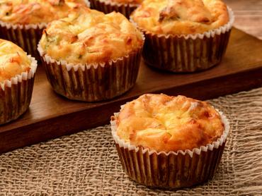 Süsd meg a hagymakockákat, majd amikor már kihűltek, dolgozd össze a hozzávalókat úgy, hogy előbb a lisztet a sütőporral kevered össze, aztán egyenként kevered el a tésztában a többi hozzávalót. Az így kapott tésztát oszd szét a muffinformákba, így süsd készre legalább fél óra alatt.