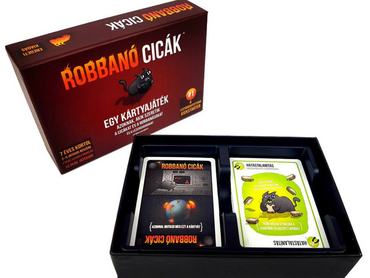 A címe tökéletesen összefoglalja, hogy miről is van szó: egy végtelenül humoros társasról, amiben néhány macska felrobban. Leginkább az UNO-hoz tudom hasonlítani. Egy pakliból kártyákat húzunk, amiket előbb vagy utóbb a kezünkből az asztalra teszünk, és igyekszünk elérni, hogy játékostársainknak előbb kerüljön a kezébe valamelyik robbanó cica. Ha ügyesen játsszuk ki az összegyűlt macskasereget, kártyát húzhatunk valaki kezéből, kimaradhatunk egy körből, megnézhetjük a húzópakli felső kártyáit, esetleg hatástalaníthatjuk a robbanó cicát.