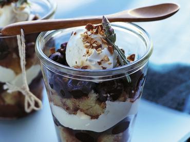 A csokiöntettel nem sok dolgod lesz, csak olvaszd össze a hozzávalóit. A diót pirítsd meg, és kezdheted is a rétegezést. Kerüljön minden pohárba piskóta, gesztenyés réteg, vaníliakrém, tejszínhab és csokiöntet is. Nem baj, ha nem lesz tökéletesen szép, ez egy rusztikus desszert, ami mindenképpen gyöngyörű a tetején a tejszínnel, a csokicsíkokkal és a pirított dióval.