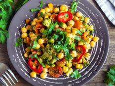 Egy adag mazsola, friss petrezselyem és fehérborecet elég ahhoz, hogy a nem túl markáns ízű csicseriborsóból különleges köret legyen. Töltheted tortillalapokba, feldobhatod csirkemellcsíkokkal, de egy adag köfte is jól áll ennek a fogásnak. Ne ijedj meg a mazsolától, szuper helye lesz a sós csicseriborsó-falatok és a savanykás öntet mellett.